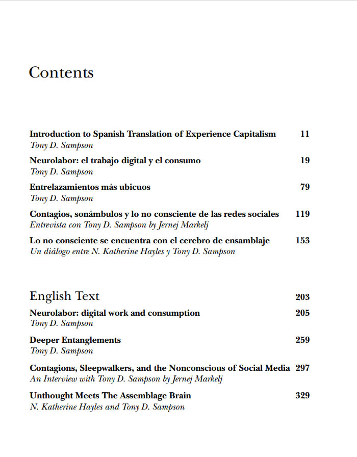 “Interview with Tony D. Sampson” in The Birth of Digital Populism. Crowd, Power and Postdemocracy in the 21st Century, Obsolete Capitalism Free Press, 2015.